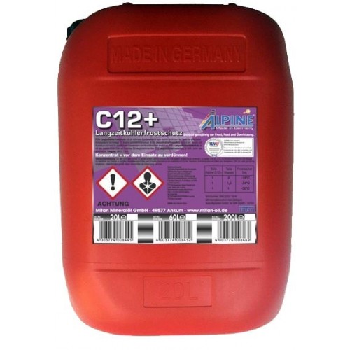 Alpine C12+ (фиолетовый) антифриз для радиаторов на основе этиленгликоля, не содержит таких потенциально вредных веществ, как нитриты, амины и фосфаты.