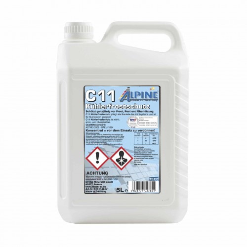 Alpine C11 (синий) - антифриз на основе этиленгликоля и присадок гибридного класса. Обеспечивает отличную защиту от замерзания, ржавчины и перегрева. При смешивании с водой обеспечивает надежную защиту системы охлаждения автомобиля.