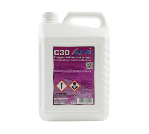 Alpine C30 (фиолетовый) антифриз для радиаторов, на основе этиленгликоля. Он не содержит потенциально вредных веществ, таких, как нитриты, амины, бораты и фосфаты.